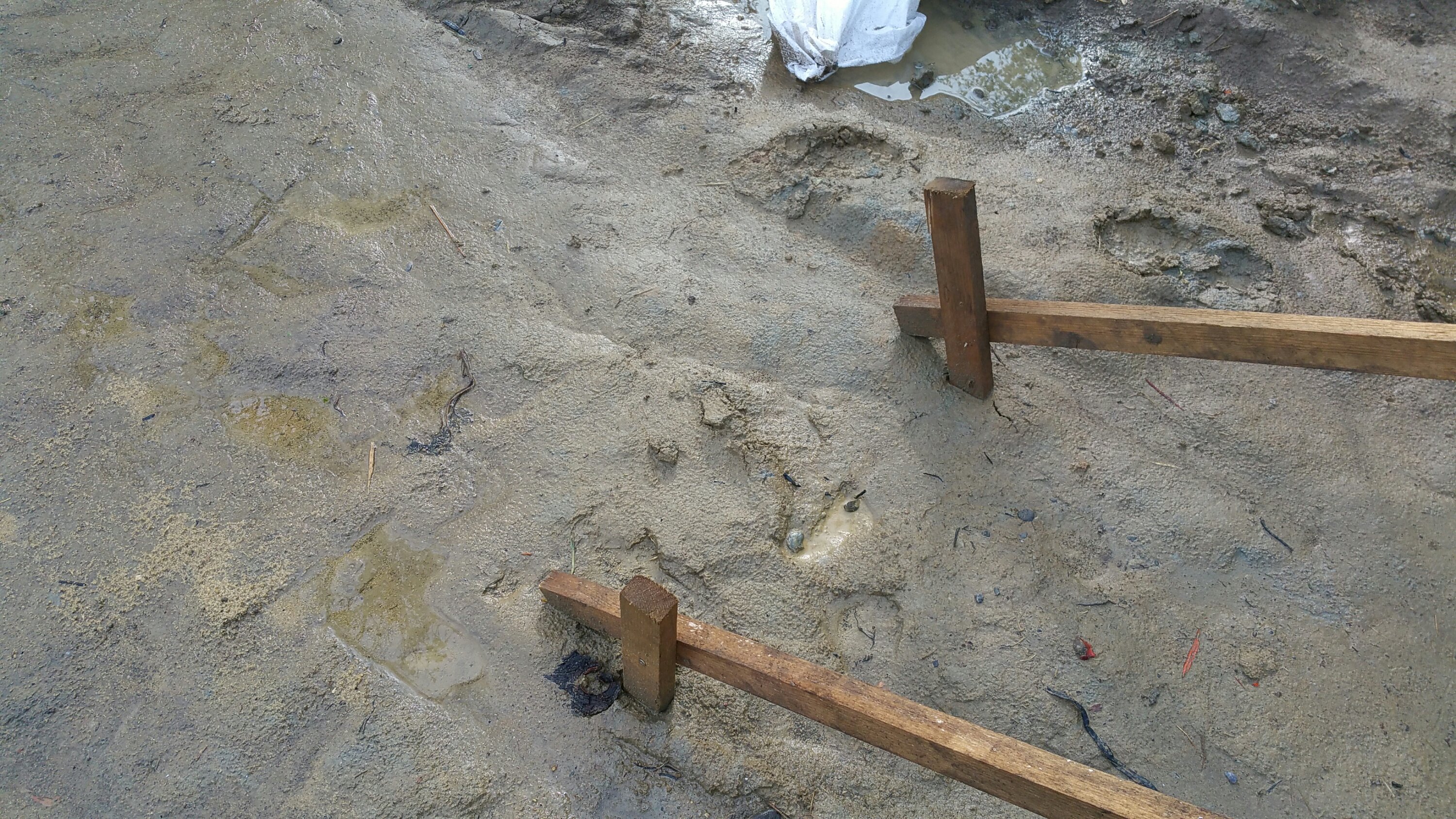 Din păcate, vremea nu a cooperat așa că a trebuit să ne retragem și am acoperit lucrarea cu grinzi de lemn și o prelată.