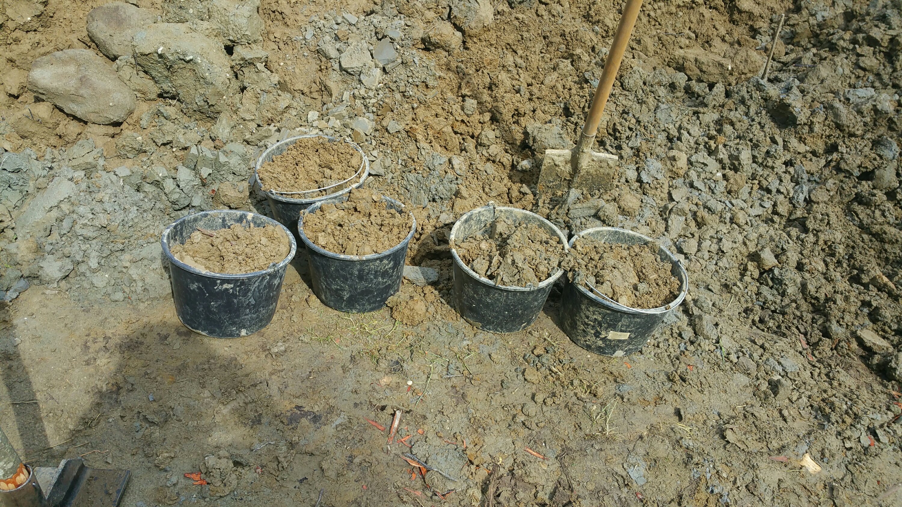 Pământul îl punem inițial în găleți ,folosiți ca unitate de măsură