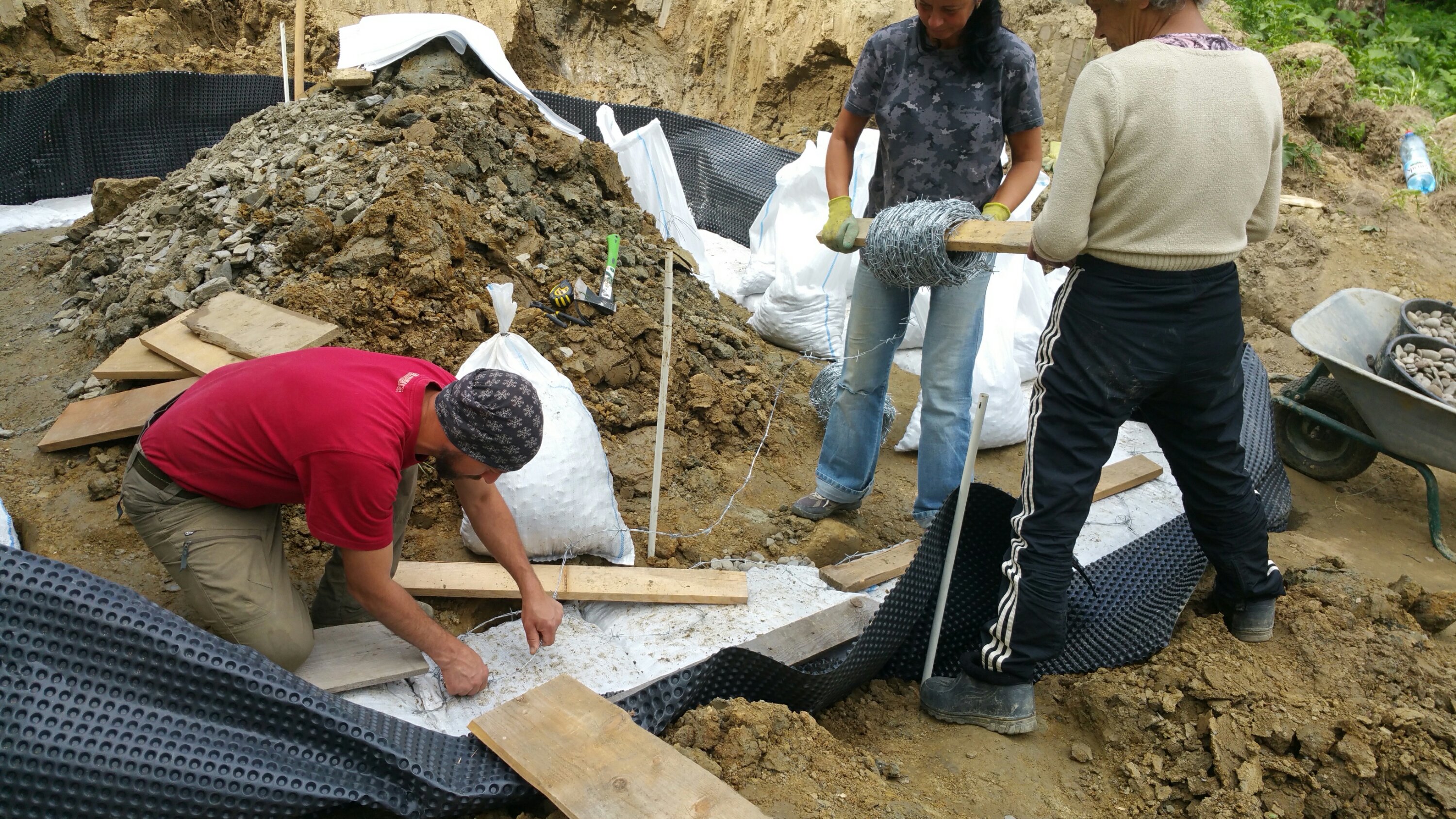 Peretele dinspre deal pe care îl tratăm cu respectCitește și celelalte articole despre construirea beciului îngropat: